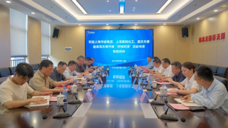 8月14日,中國化工政研會副秘書長、思政專家委員會成員,上海華誼集團股份有限公司黨委宣傳部部長、黨校常務副校長廖達海,上海氯堿化工股份有限公司黨委副書記、紀委書記、工會主席周建峰,重慶天原化工有限公司黨委副書記、副總經理、工會主席周勇等一行,赴宜賓天原集團開展“同根同源”歷史傳承專題調研。宜賓天原集團黨委委員、工會主席王明安,董事會秘書何波參與調研座談。